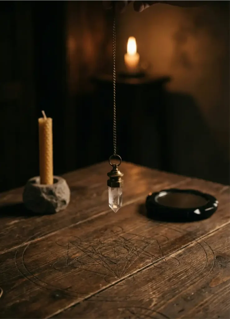 Sarkaç (pandül) çalışması, bilinçaltında açık kalan soruların enerjisel titreşimler aracılığıyla yanıt bulmasını sağlar.